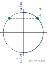 Отберём корни при помощи тригонометрической окружности (см. рис.). На заданном промежутке лежит корень ![]()